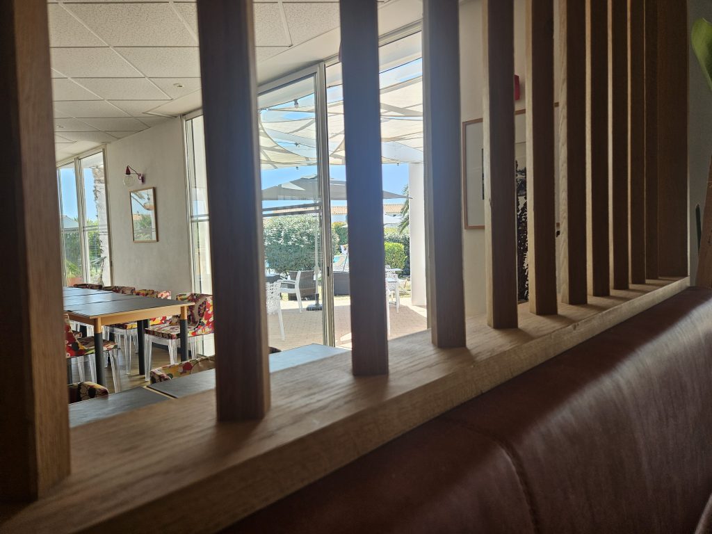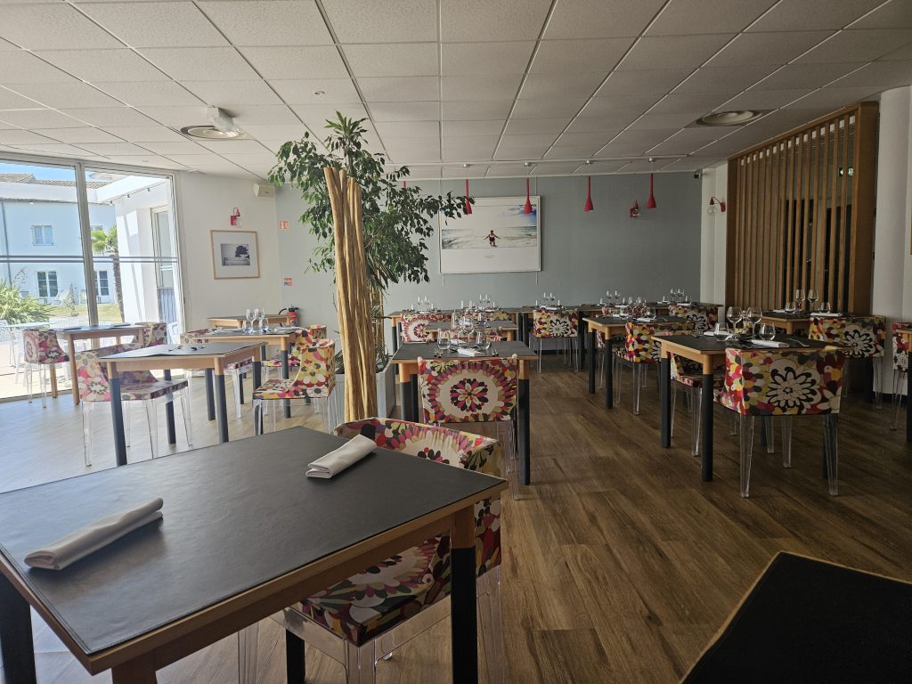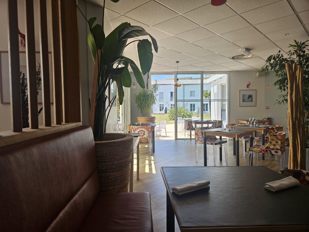 La salle de restaurant bénéficie d’un emplacement privilégié au sein du complexe THALACAP, offrant une atmosphère paisible et élégante. Les grandes baies vitrées laissent entrer la lumière caractéristique de l’Île de Ré, tandis que la décoration sobre et contemporaine invite à la détente.